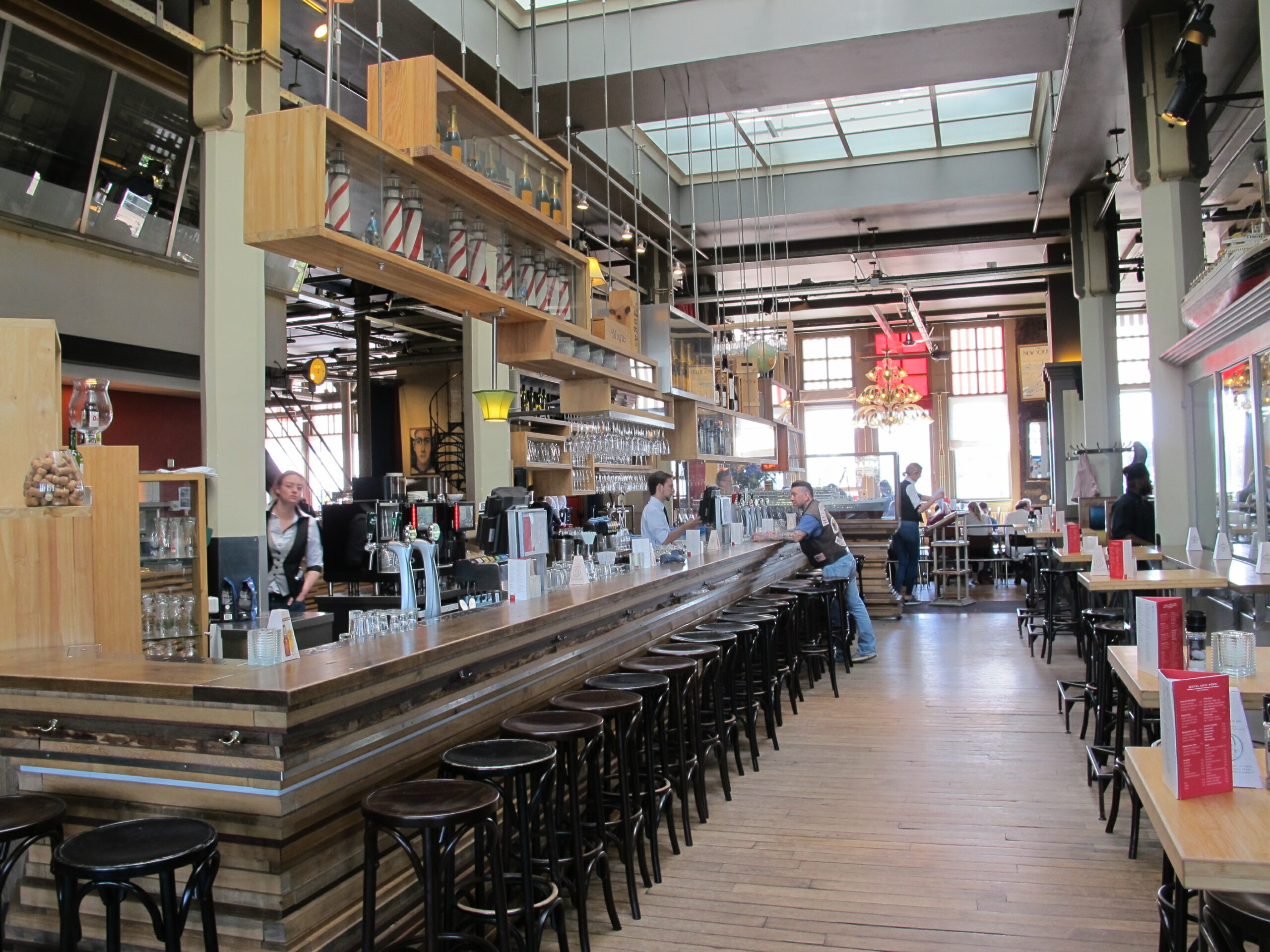 A l’intérieur, mélange d’Art Nouveau, d’esprit industriel et de mobilier vintage. C’est nostalgique mais pas trop, à la fois dans son jus et très actuel, le tout relevé d’une pointe de chic.