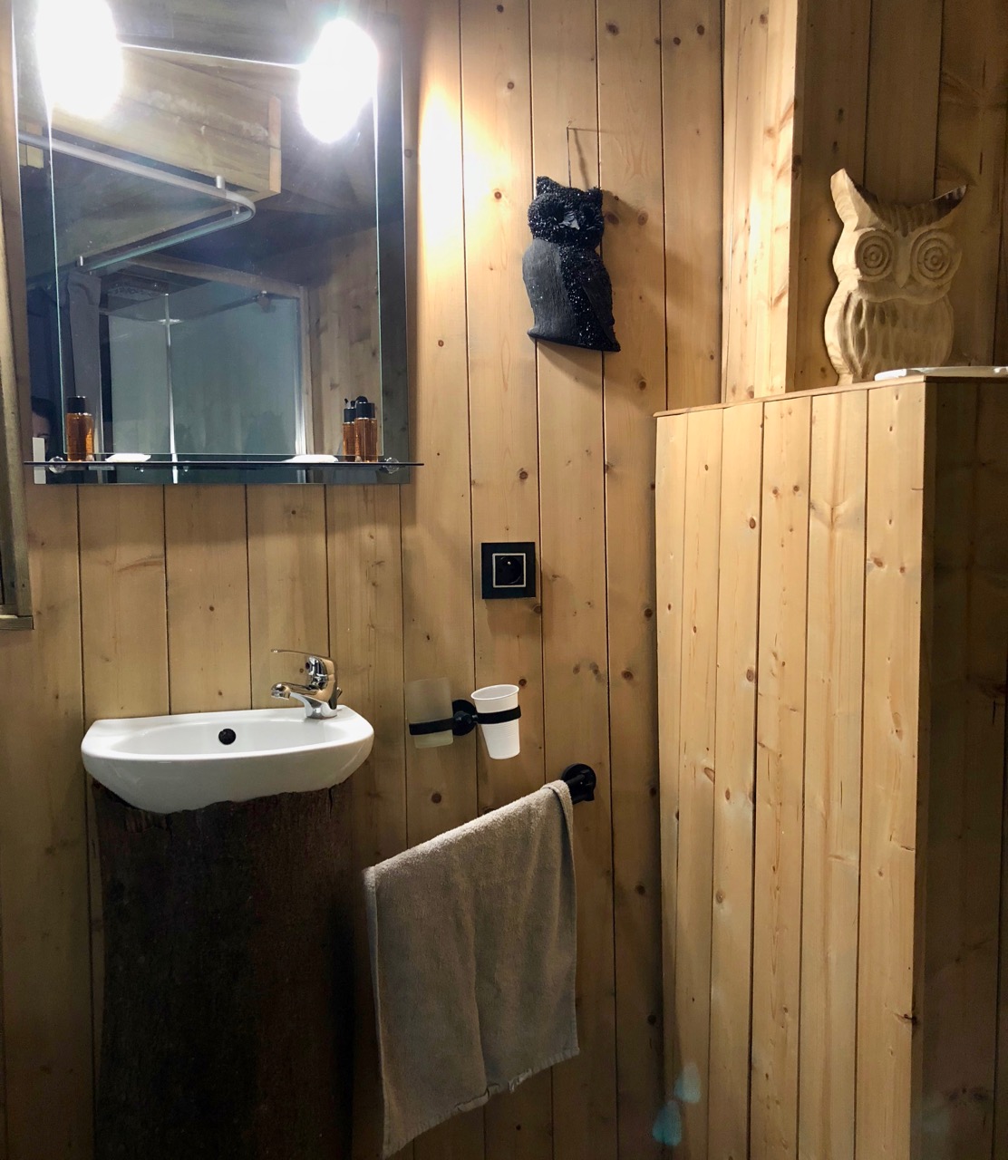 Port-le-Grand Chateau des Tilleuls – cabane Le Nid de la Chouette salle de bains lavabo