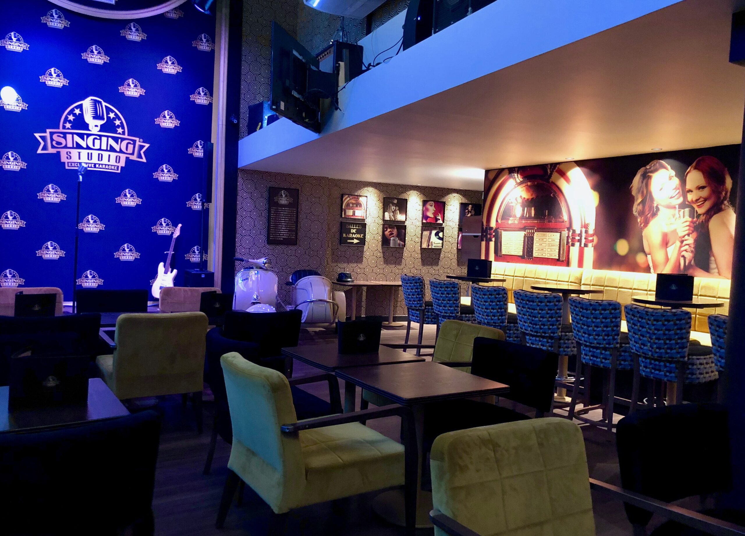 - Le « lounge bar » de l’entrée, vraiment très cosy et chaleureux. C’est là qu’a lieu, chaque vendredi soir, une séance « publique », au cours de laquelle on donne de la voix devant tout un public et pas juste devant ses amis.