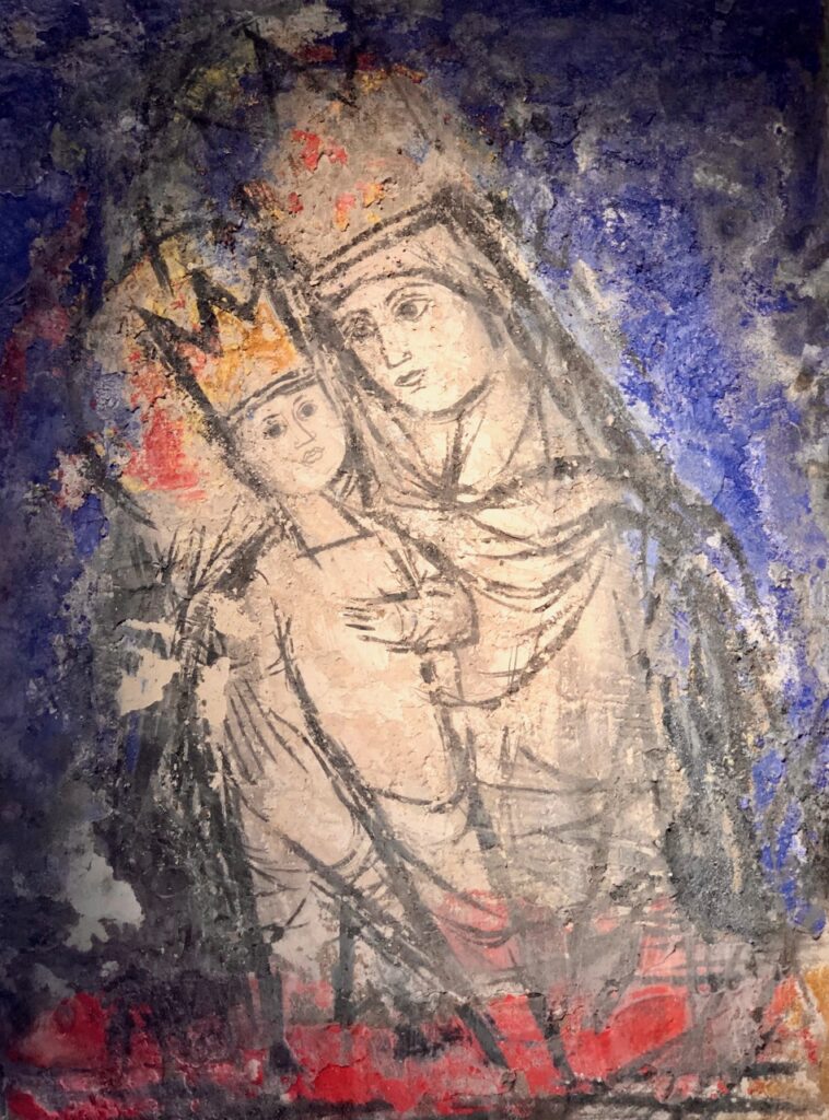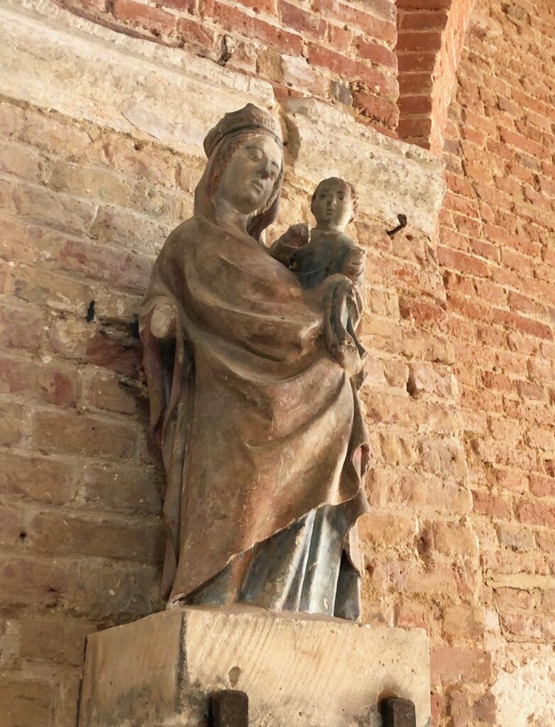 Quant à la délicate Vierge à l’enfant en calcaire polychrome, elle date du XIVe, rien que cela !