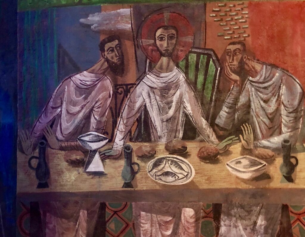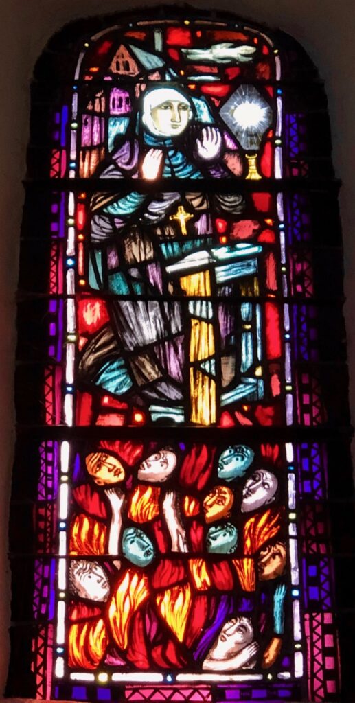C’est aussi lui qui a réalisé les vitraux, qui jettent une douce lumière sur les œuvres picturales.