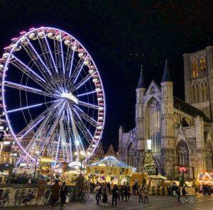 Gand-Marche-de-Noel-grand-roue-et-eglise-voisine