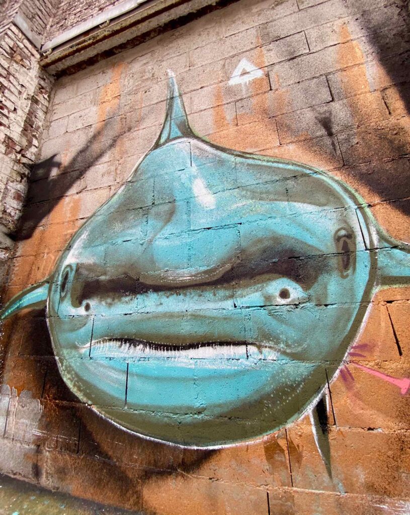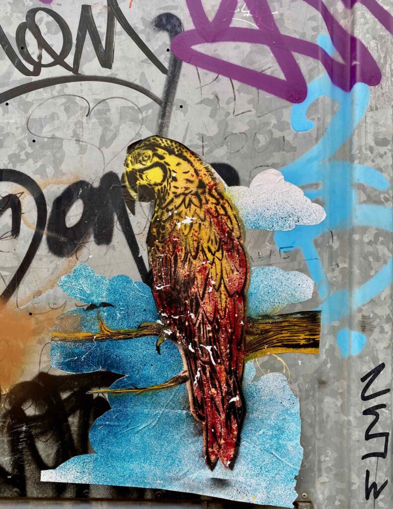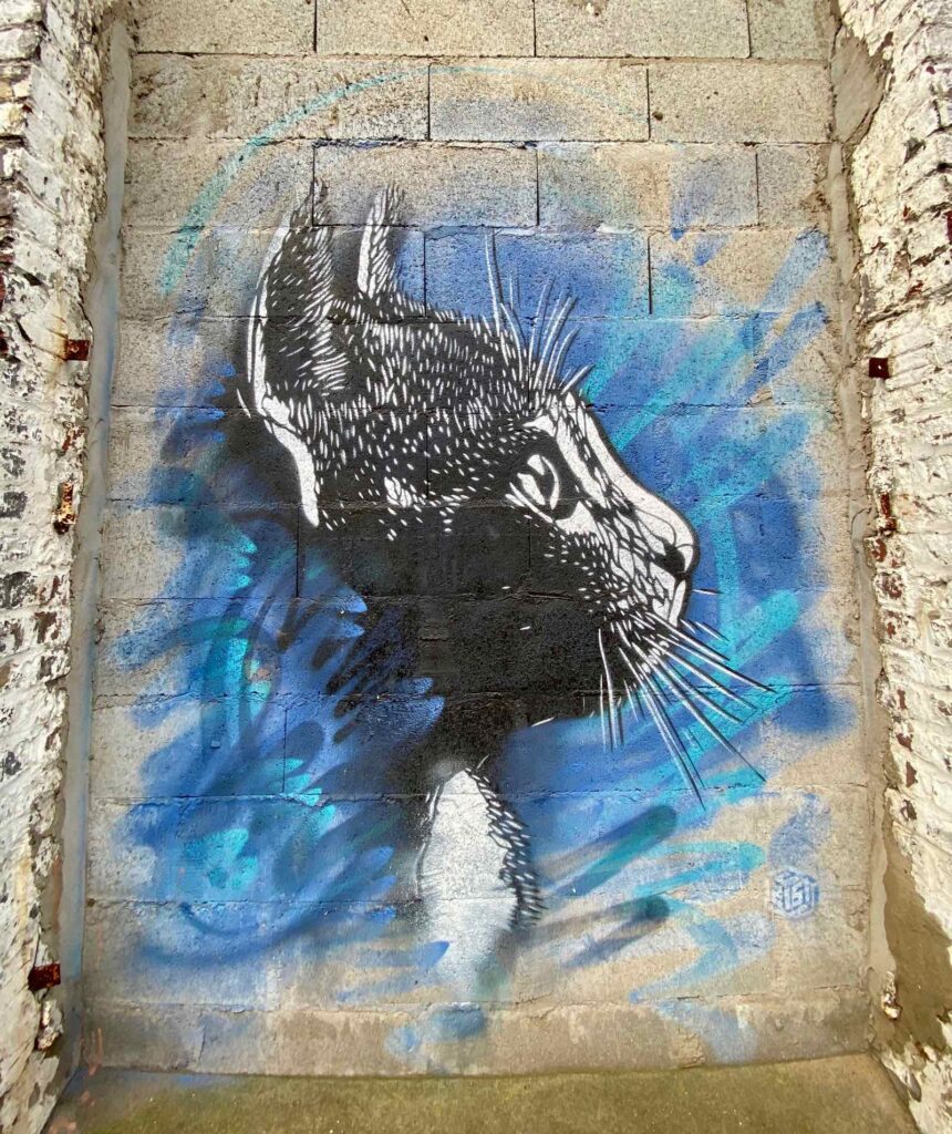 Pas si Nasty que cela le graffeur français qui, à ses débuts dans les années 80/90, a couvert des rames de métro ! Des années plus tard, il joue toujours merveilleusement avec les couleurs. Et met l’écriture au centre de ses fresques lumineuses. J’aime les lettres, j’aime les couleurs alors, forcément, j’aime cette œuvre de Nasty, qui orne le mur d’enceinte d’un garage.