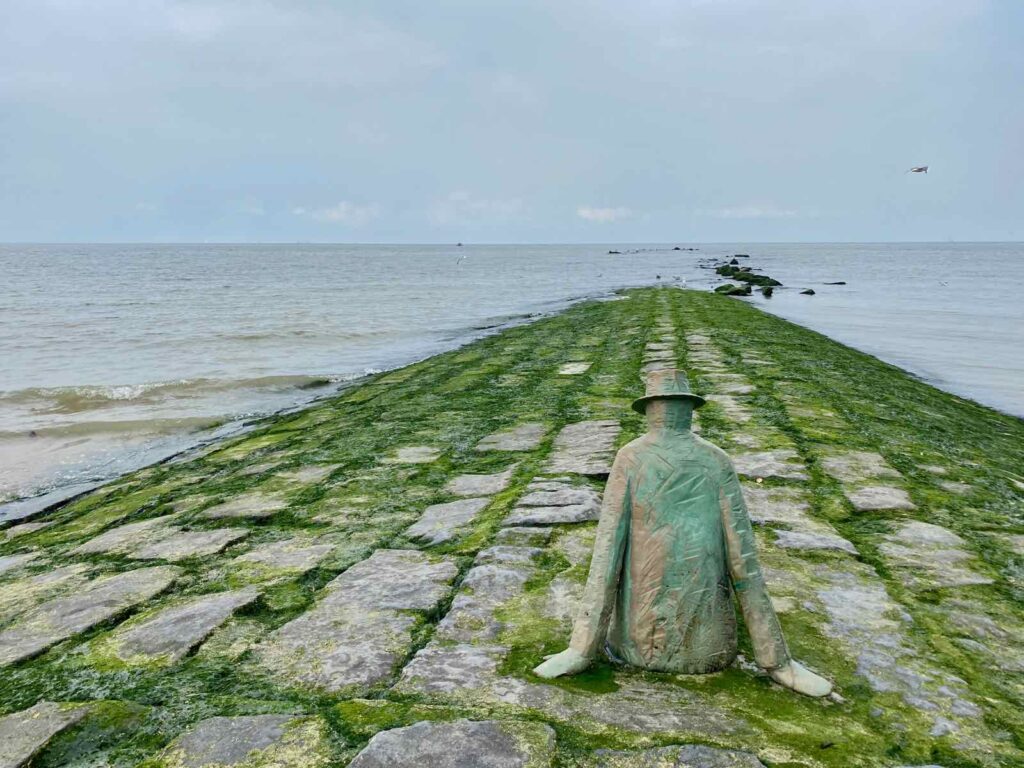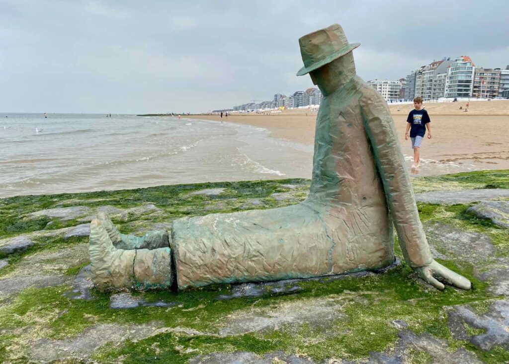 Enfant, il y passait en effet ses vacances. Bien plus tard, en 1997, une expo lui sera consacrée au Casino de Knokke. C’est à cette occasion que l’artiste belge crée cette œuvre, que je trouve follement poétique. Un petit bonhomme, vêtu d’un imperméable et d’un chapeau, inspiré à la fois par Magritte et par l’inspecteur Maigret de Georges Simenon, autre Belge célèbre.