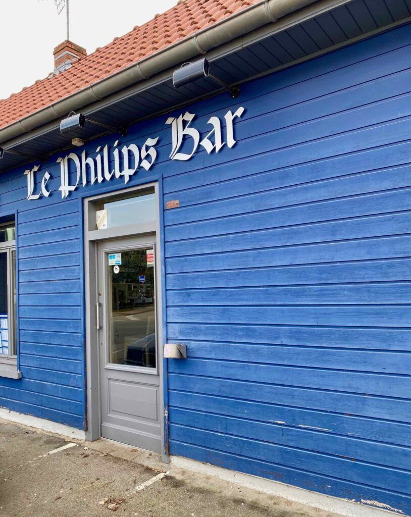 Puis traversez la départementale et passez devant le Philips Bar tout bleu.