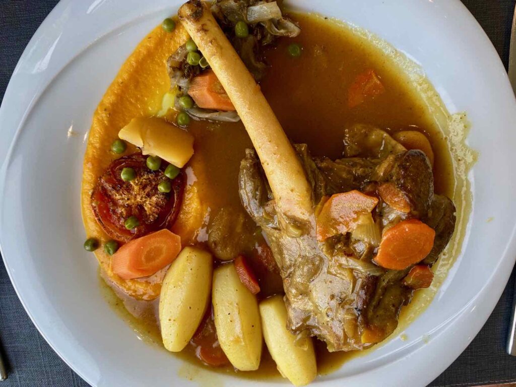 Une souris d’agneau mijotée, façon tajine (20,50 €) pour mon co-marcheur et co-mangeur.
