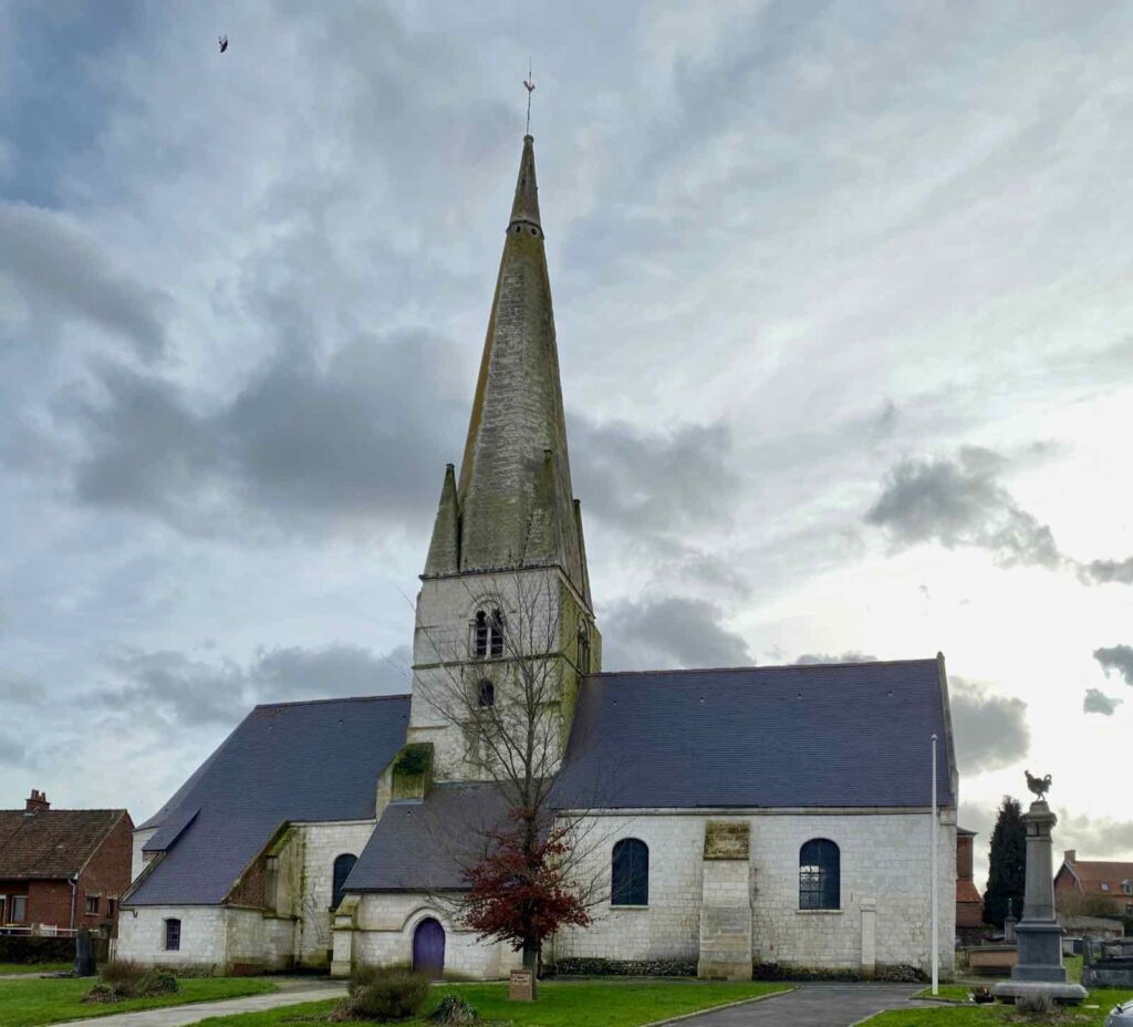 Un air de campagne et de jolies fermes et voici la place Jean Jaurès, avec son église Saint-Martin.