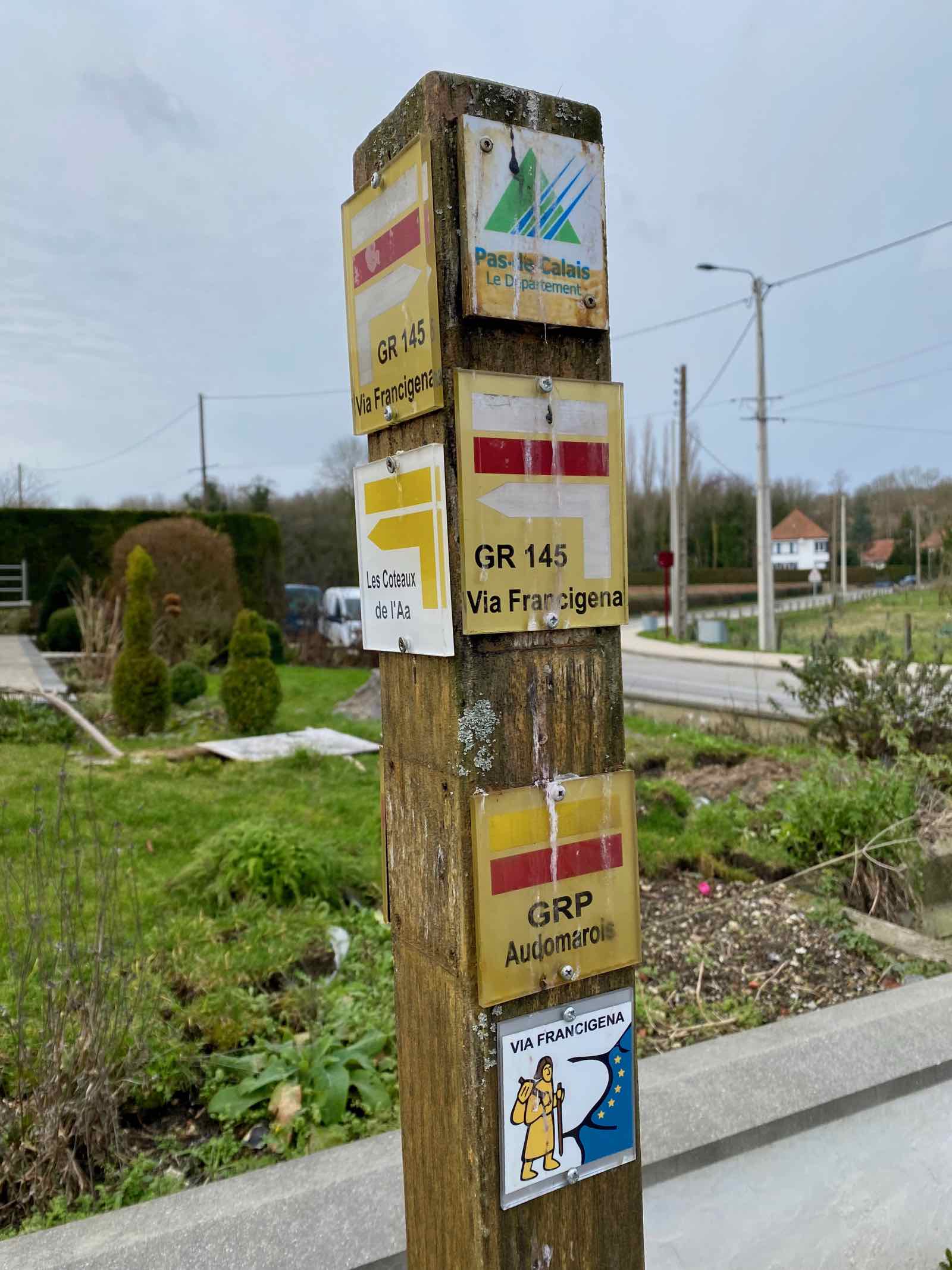 Via-Francigena-entre-Wisques-et-Esquerdes-poteau-directionnel