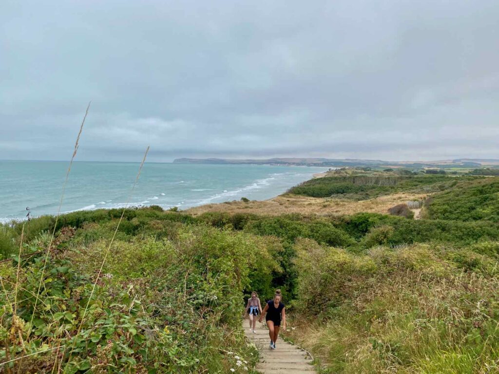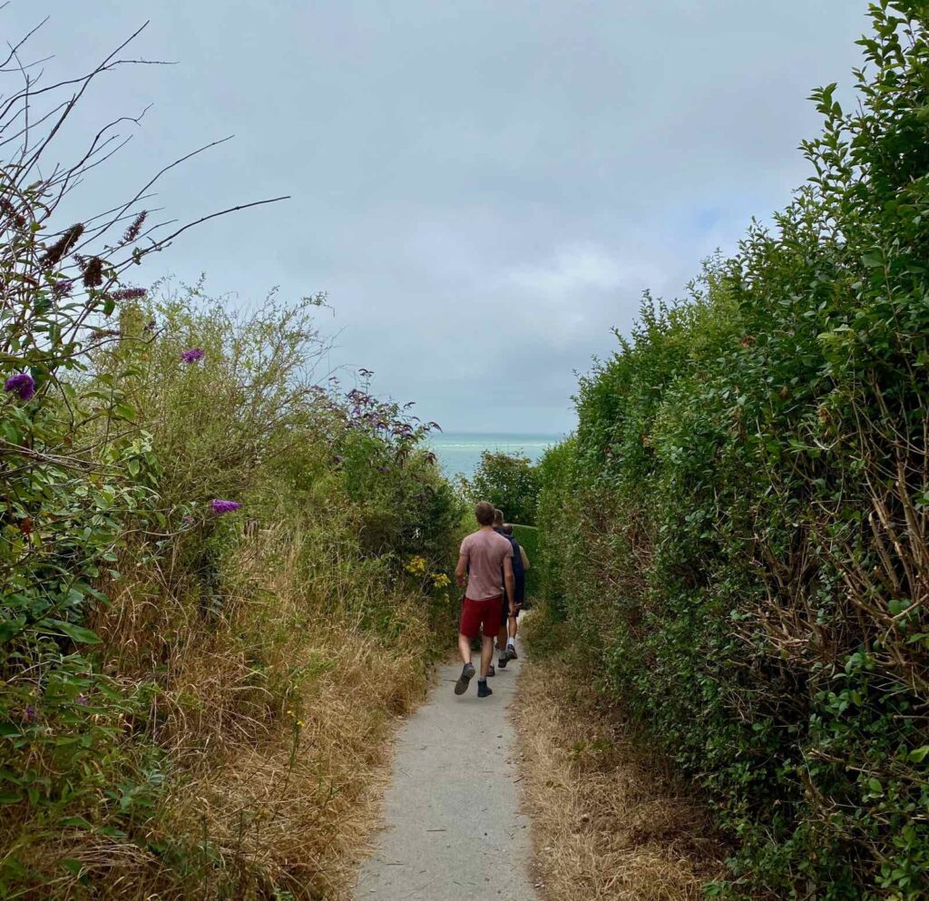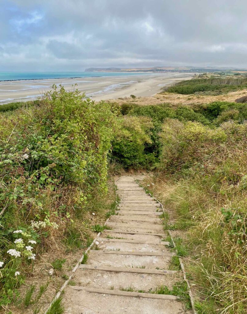 Il n’y a plus rien d’autre à faire qu’à admirer la vue à couper le souffle sur la Manche et toute cette beauté, déployée devant nos yeux. Juste mettre un pied devant l’autre, en prenant garde aux marches…