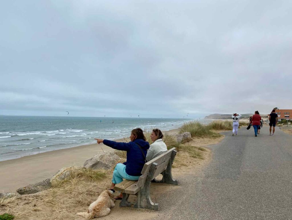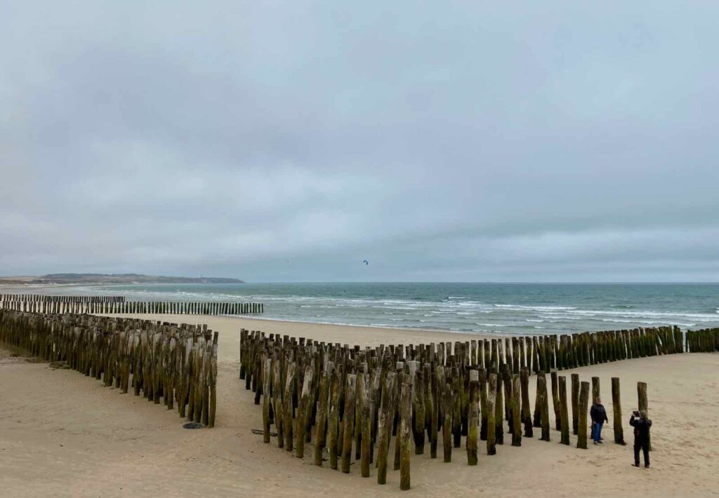 On continue encore un peu et voici la jolie digue de Wissant. Des kite-surfs jouent avec les vagues et le vent, suivis des yeux par des spectateurs admiratifs.