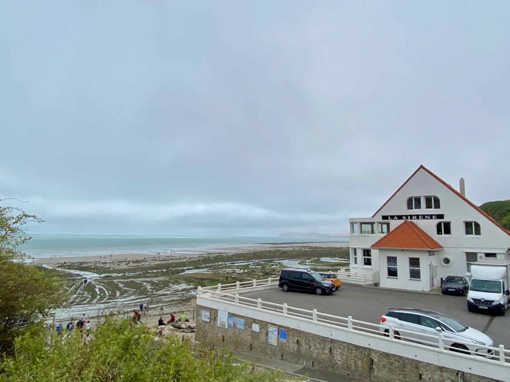 Rapidement, on se retrouve face au restaurant La Sirène, à Audinghen. On descend jusqu’à la route, on la traverse et on part vers le sentier côtier, appelé aussi sentier des Douaniers.
