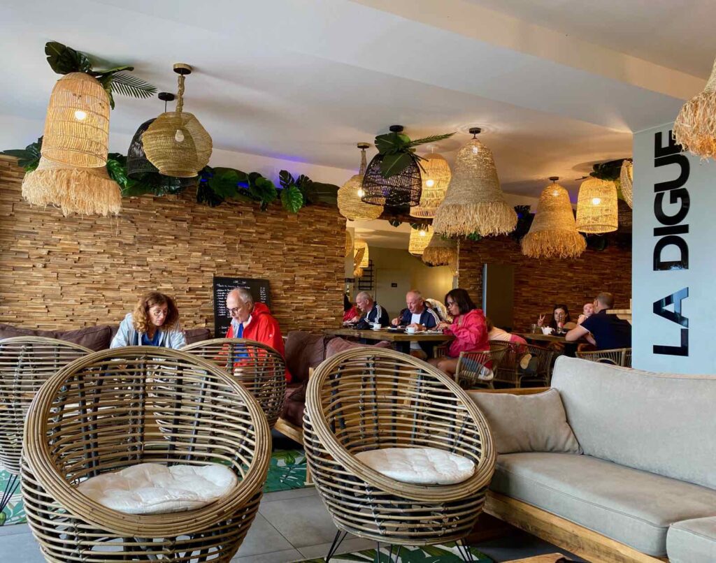 Face à la mer, la brasserie La Digue nous tend les bras pour un café en forme de remontant. C’est chaleureux et sympa et on se dit que si on avait su, on aurait cassé une petite croûte ici, au lieu de manger un pauvre sandwich (déjà digéré) en route…