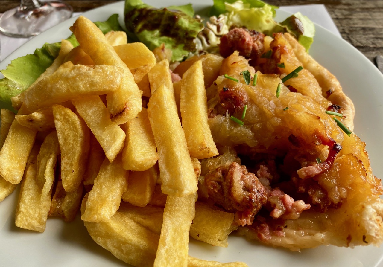 Pour rompre un peu avec la tradition, Camille et Nicolas ont pris un Welsch au saumon, au menu ce jour-là, sorte de mix entre la terre et la mer… Ils ont apprécié et ce malgré le temps estival…