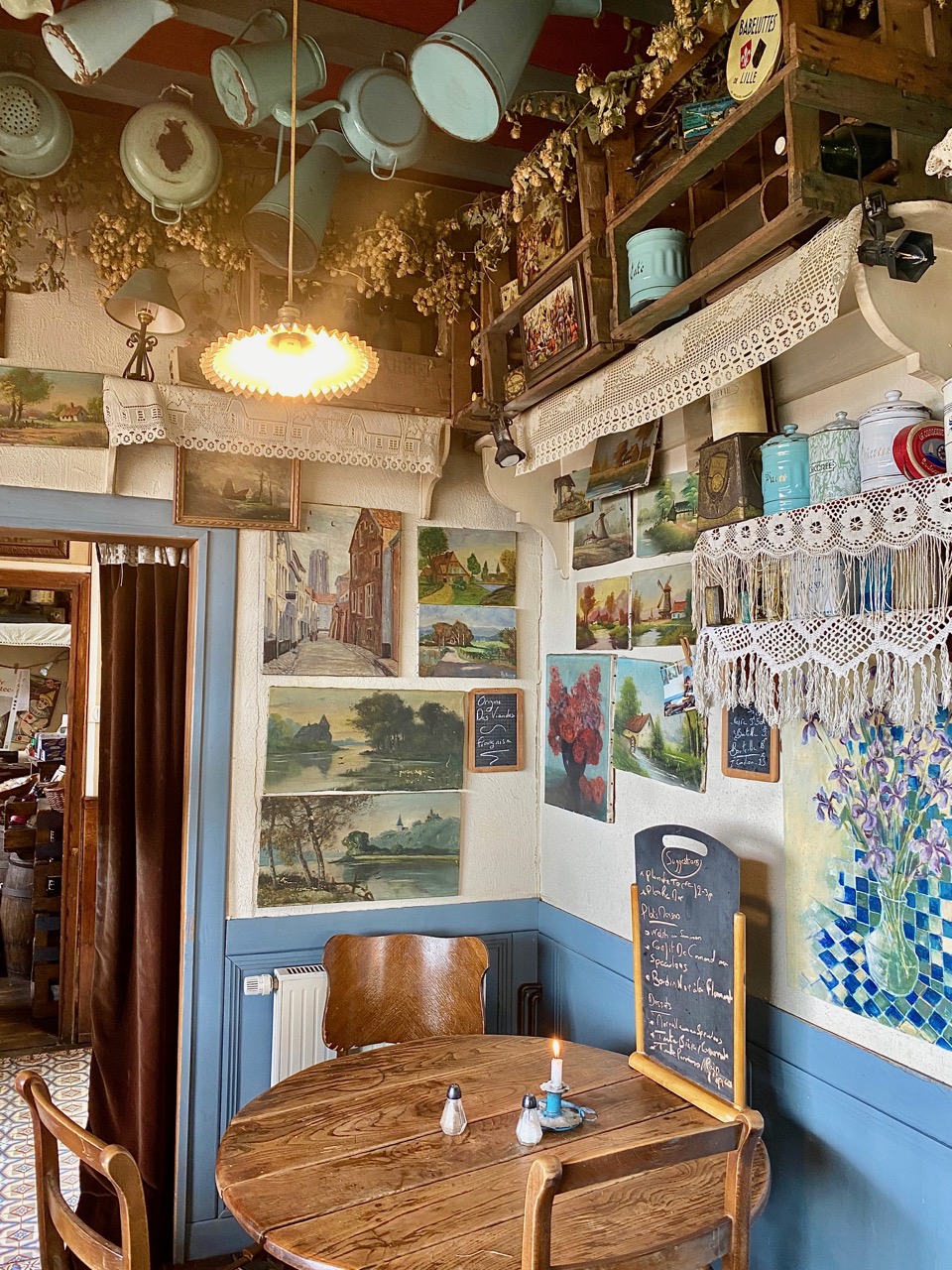 Pour moi, l’atout numéro deux est la déco, 100% charme, 100% brocante et 100% flamande. Des pots à lait, des cafetières, des moulins à café, des paniers, des bouquets de houblon séché, des tableaux… franchement j’adore…