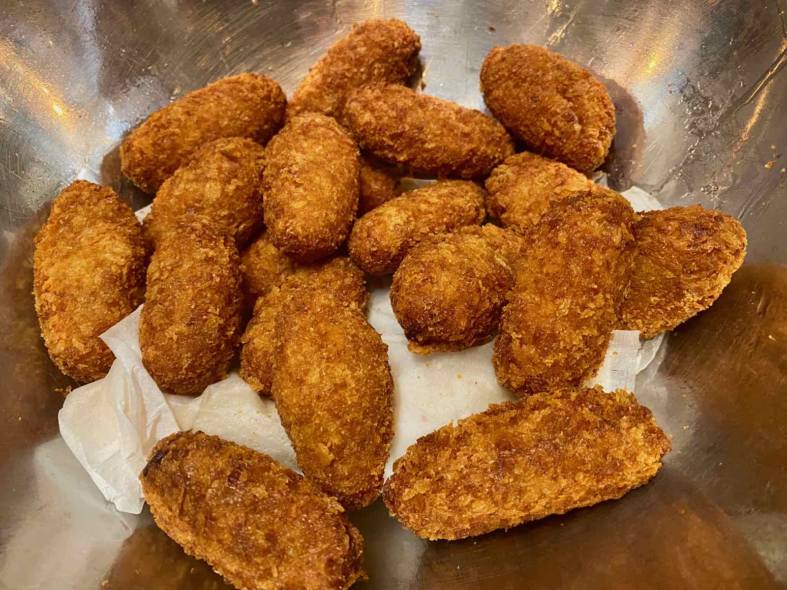 Perso, je me suis contentée de déguster et de comparer ces croquettes, à la fois semblables et si différentes d’aspect, de goût et de croustillance (je crois que je viens d’inventer un mot, hourrah !).