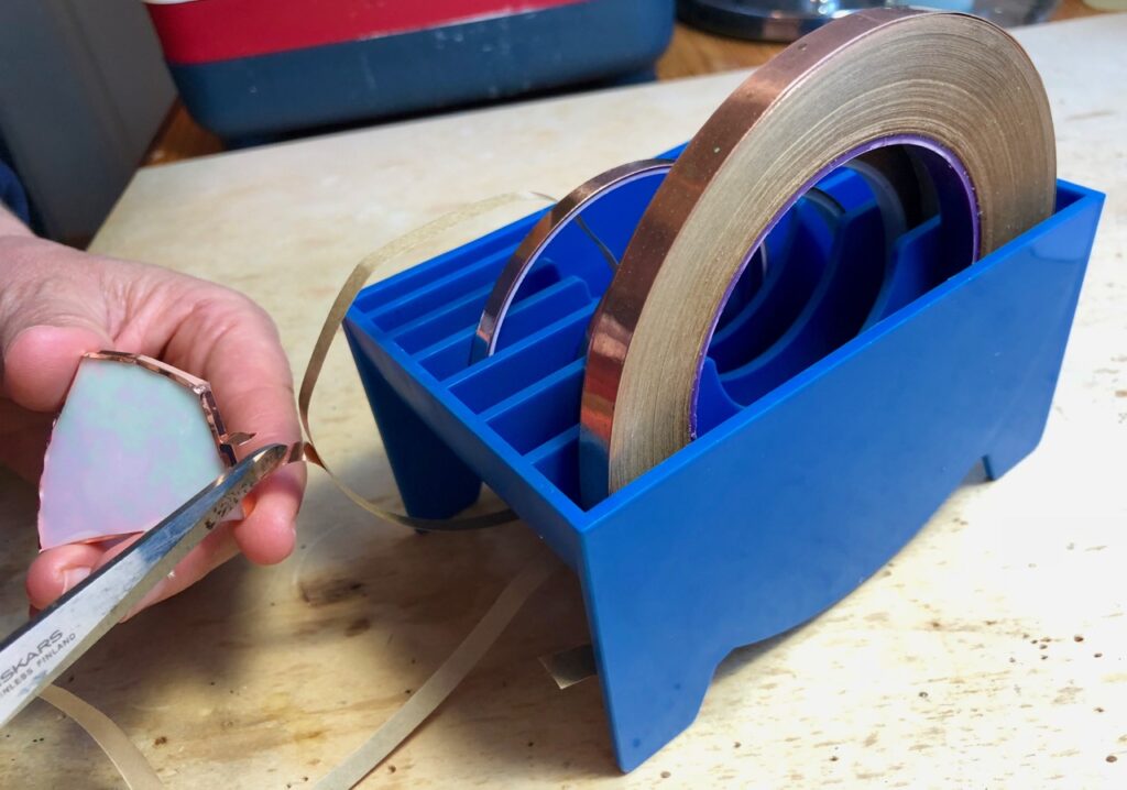 6. Un ruban de cuivre autocollant est placé tout autour de la pièce de verre.