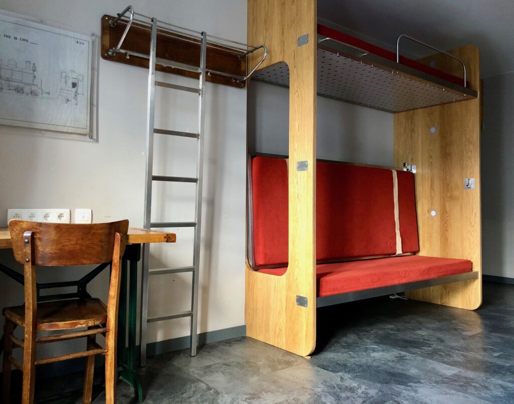 Sinon, il y a des chambres avec salle de bain, toutes décorées dans un esprit très SNCB. Elles sont pour 2, 4, 6, 9 et sont facilement modulables. Il suffit d’ouvrir ou de rabattre une couchette. Là, draps et serviettes sont compris dans le prix.