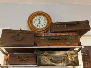 Pendule et vieilles valises – Train Hostel Bruxelles Belgique