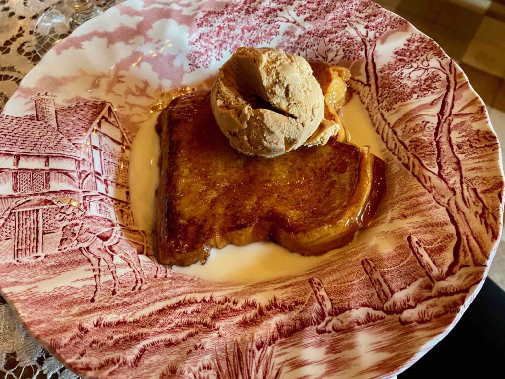 Côté dessert, la gaufre caramélisée figurant à l’ardoise avait finalement laissé la place à une brioche caramélisée façon pain perdu, avec sa boule de glace au caramel. Un vrai dessert de mon enfance, régressif et délicieux. Une preuve de plus qu’on peut être Brocantine et excellente petite table à la fois !