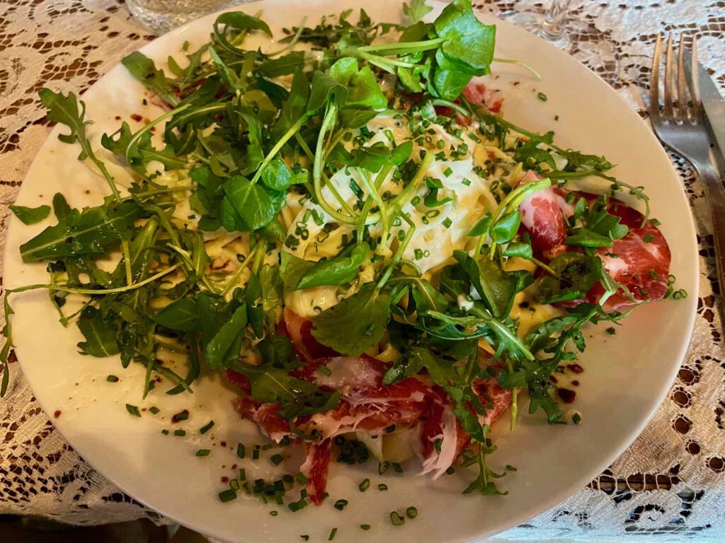 Pas amatrice d’andouillette pour un sou, j’ai tenté les tagliatelles à la Fleur d’Audresselles et la coppa (16 €) pour changer un peu de mon cher welsh. Grand bien m’en a pris ! Le mariage entre fromage fondu, goûteuse charcuterie et pâtes surmontées d’un peu de verdure était divin et j’en salive encore, rien qu’à y penser !