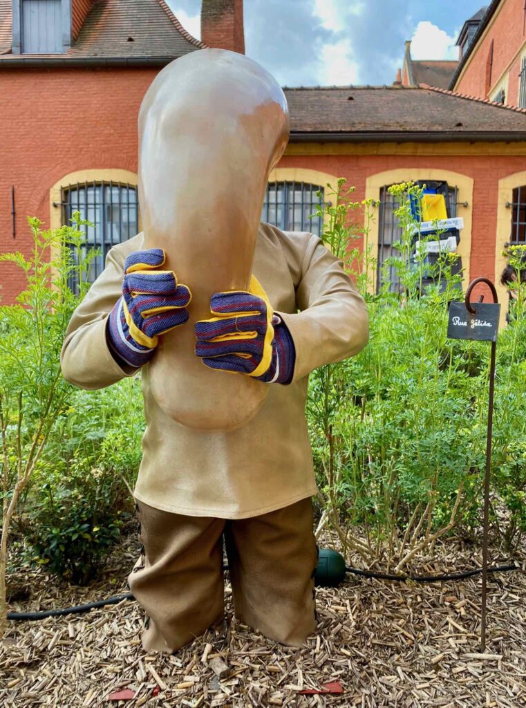 On le croise ainsi dans le jardin médicinal de l’Hospice Comtesse, où ses Nanitos et Demi-Nanitos  participent joyeusement à l’entretien du lieu. Nés dans le potager, ces personnages hybrides, mi-hommes mi-légumes, nous entrainent dans leur monde onirique, vertueux et circulaire…