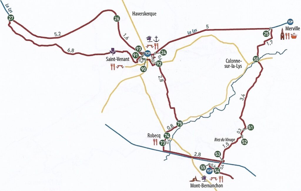 Première mission du jour ? Expérimenter le réseau points-nœuds vélo autour de la Lys. Je vous ai déjà parlé de ce tout nouveau réseau dans un post dont voici le lien (lire ici). Mais si vous avez la flemme de le lire, voici en gros comment ça marche.