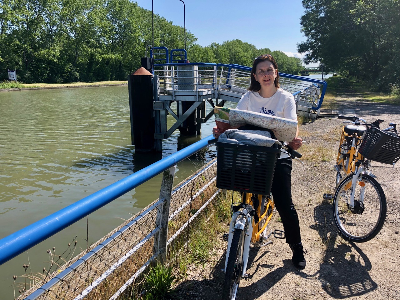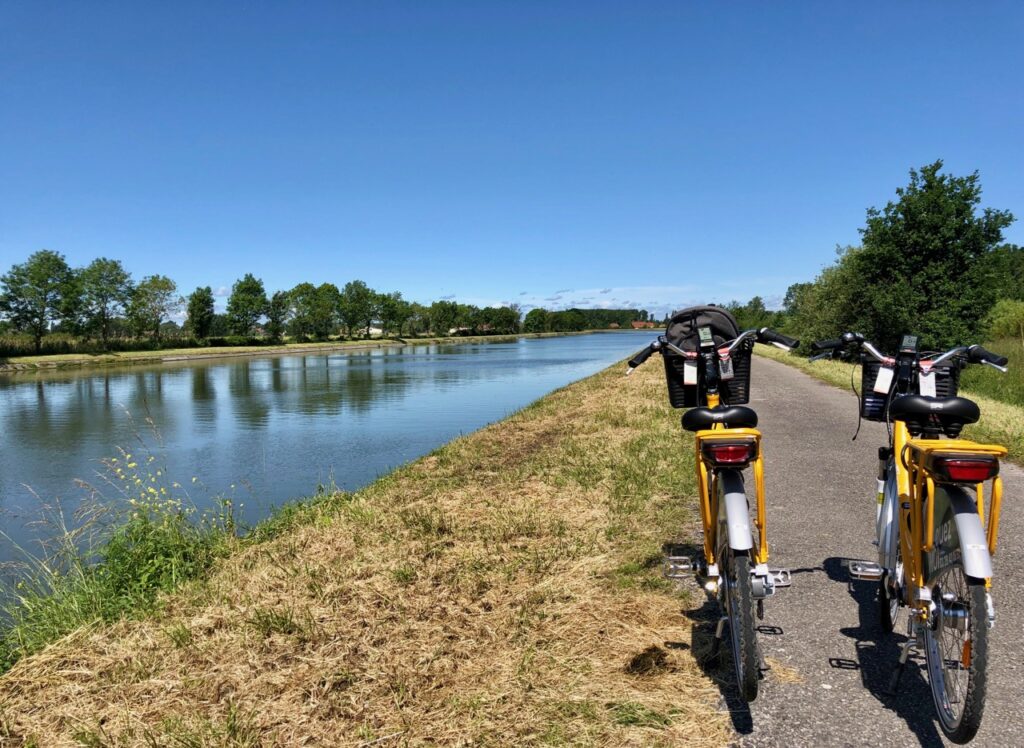 Et en route pour l’aventure, sur un chemin parsemé de flaques d’abord puis sur un beau chemin de halage. À 15 ou 20 km/heure, c’est la vie en mode slow ! Le bon tempo pour admirer la nature, apprécier la caresse du soleil et  profiter du concert en stéréo offert par les oiseaux.