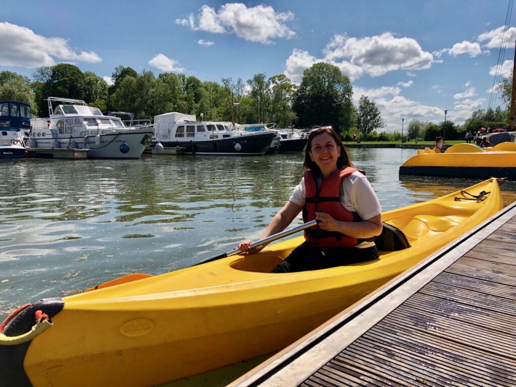 Avant de se la couler plus douce (surtout moi) une fois sur la rivière. On se laisse dépasser par une bande de kayaks. On ne cherche même pas à faire la course avec les pédalos. Et on contemple les nuages qui prennent la surface de l’eau pour un miroir et les amoureux qui déambulent sur les berges.