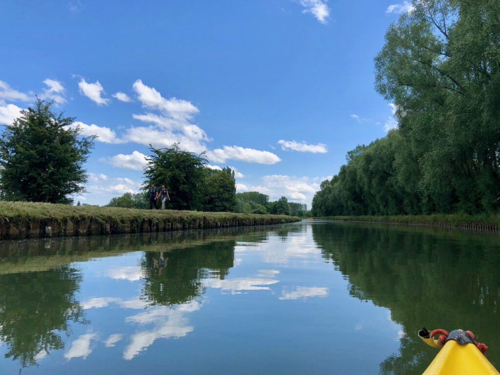 Il y a quelques jours, je vous racontais ma journée slow tourisme dans les Monts de Flandre, à la découverte du réseau points-nœuds vélo. Pas tout à fait une première puisque, la veille, j’avais déjà testé le nouveau réseau dans le secteur Flandre Lys. Testé et comment puisque la boucle d’une vingtaine de kilomètres prévue au départ en a finalement fait dix de plus ! Juste parce que j’avais la tête dans les nuages au lieu d’avoir les yeux sur les panneaux… Mais la Lys est bonne joueuse. L’après-midi, elle m’a permis de me la couler douce, en canoë et surtout en bateau électrique. À la base nautique d’Haverskerque, doucement rime avec ressourcement…