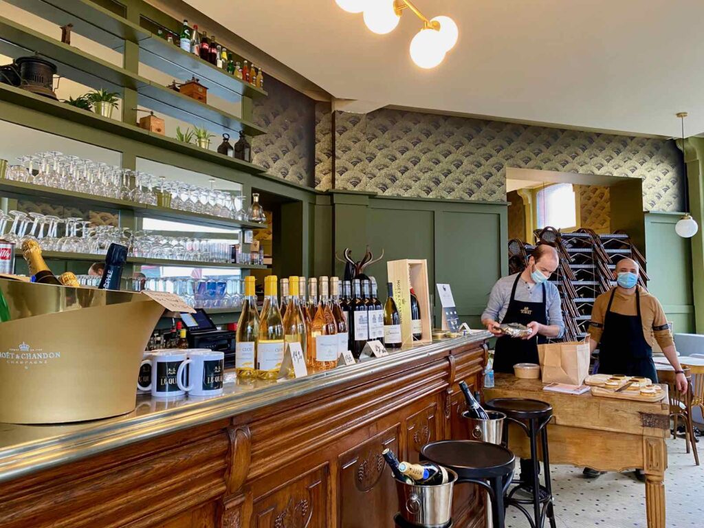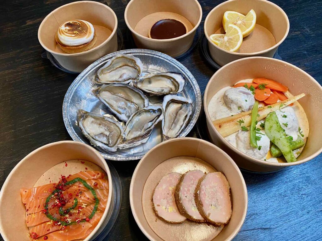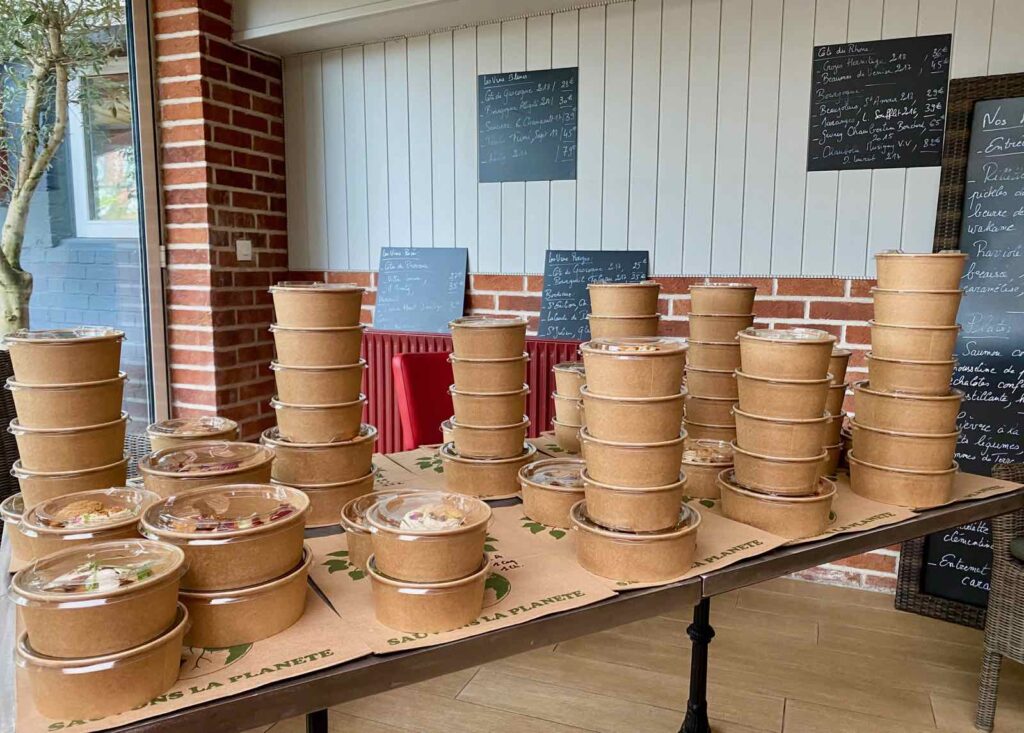 Vente à emporter du mardi au samedi, midi et soir (commande avant 12 h pour le déjeuner et avant 16 h pour le dîner avec un retrait jusqu’à 17 h 45) ainsi que le dimanche midi (commande le samedi et retrait le dimanche, entre 12 h et 13 h).