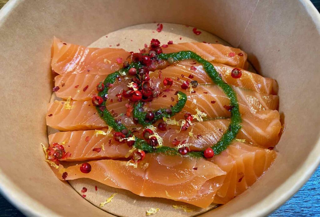 Quant au gravlax de saumon écossais label rouge aux baies roses et agrumes (12 €), quelle délicatesse et quel moelleux ! Une vraie petite tuerie dont je garde un souvenir ébloui… alors même que je ne suis pas une vraie fan de saumon.