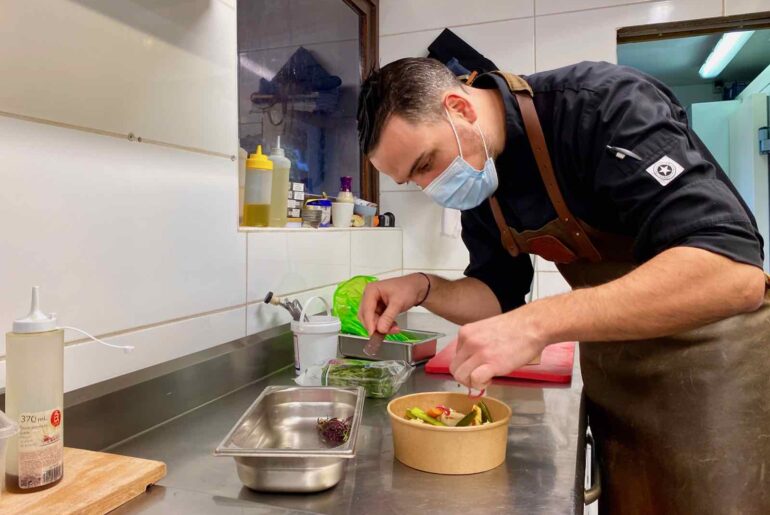En cuisine, Kevin, le chef, met tout son cœur pour mitonner des recettes créatives et des mets colorés. Des plats aussi beaux à regarder que bons à manger… même s’ils quittent le restaurant dans des boîtes avec couvercle.