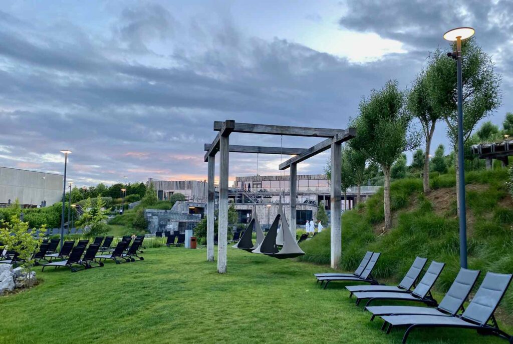 Restera alors à tester le sauna perché très très chaud, précédé d’un bain très très frais, d’où on domine une bonne partie des installations du resort.