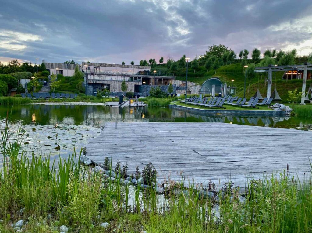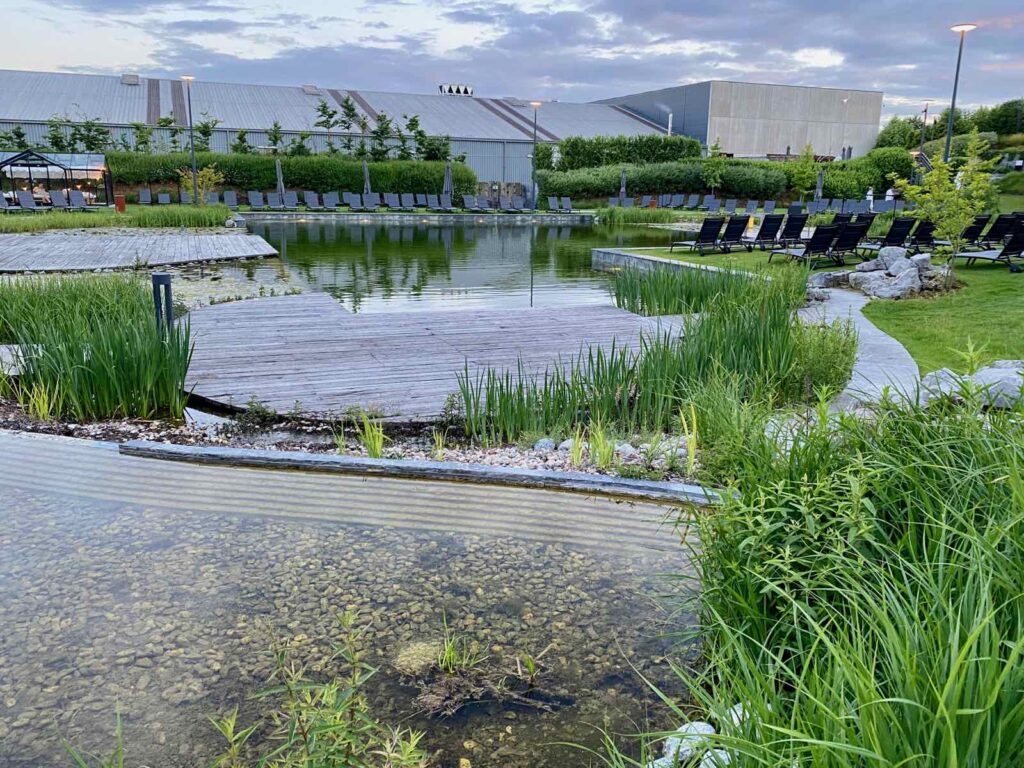 Avec ses petits airs de cabane de trappeur du Grand Nord, le sauna cabane est le plus vaste de tout le centre thermal. En sortant, plutôt que de prendre une douche froide, j’ai préféré m’immerger dans l’immense étang naturel. Plutôt frisquet en entrant mais quel bonheur, après quelques minutes, de nager toute nue au milieu des roseaux et des petites bêtes. Un vrai retour aux sources…