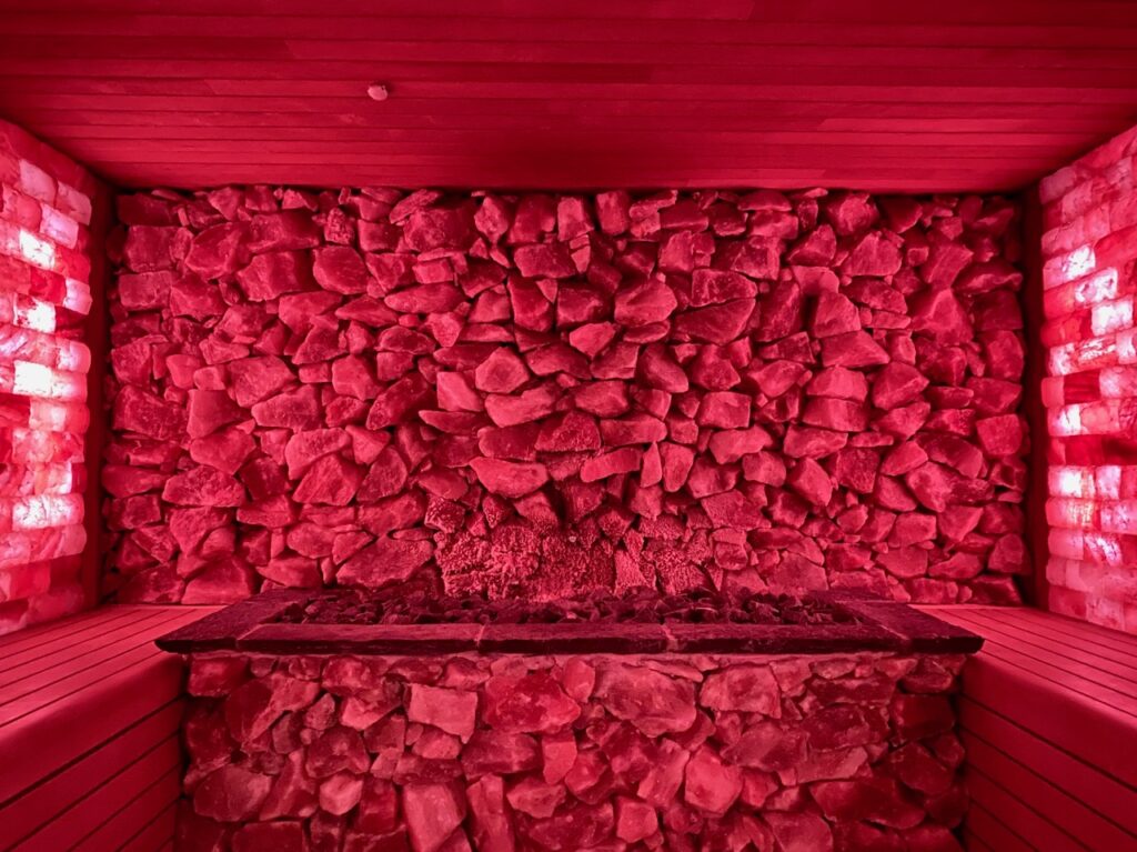 Tandis que, derrière l’étang, on se plonge dans une chaleur bienfaitrice dans le Kelo sauna et le fabuleux sauna aux cristaux de sel. C’est mon préféré pour l’ambiance mais aussi pour le soulagement qu’il apporte à une douleur d’épaule ou de cheville.