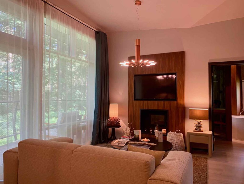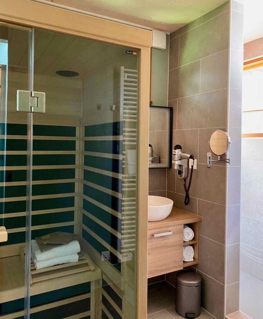 Si le grand spa de 800 m2 n’est pas encore ouvert, un espace wellness a été aménagé, en attendant, dans un hébergement dédié. Trois cabines cosy y sont installées pour un massage en solo ou en duo. À moins de privatiser tout l’espace pour quelques heures, afin de profiter à deux du bain nordique face à la forêt ou du coin cocooning.
