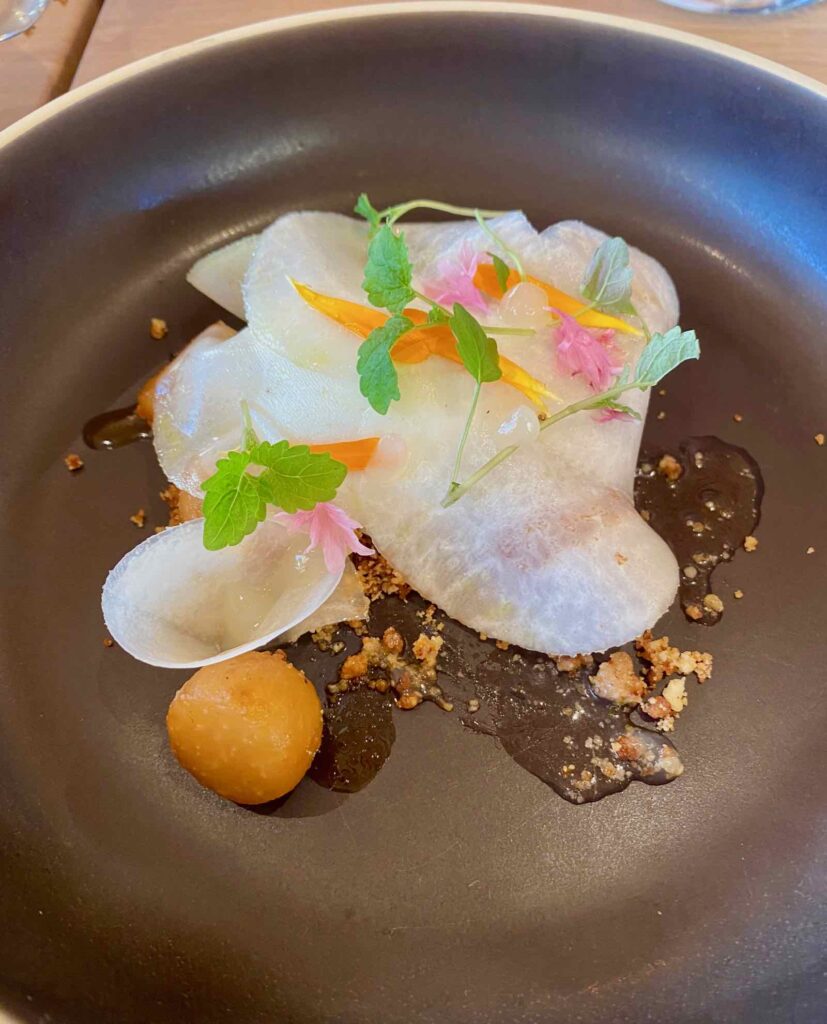 Invités à découvrir le lieu quelques jours après l’ouverture, le groupe de journalistes dont je faisais partie a également eu le privilège de goûter à la cuisine de Logan Depuydt, dans sa version la plus raffinée et gastronomique.