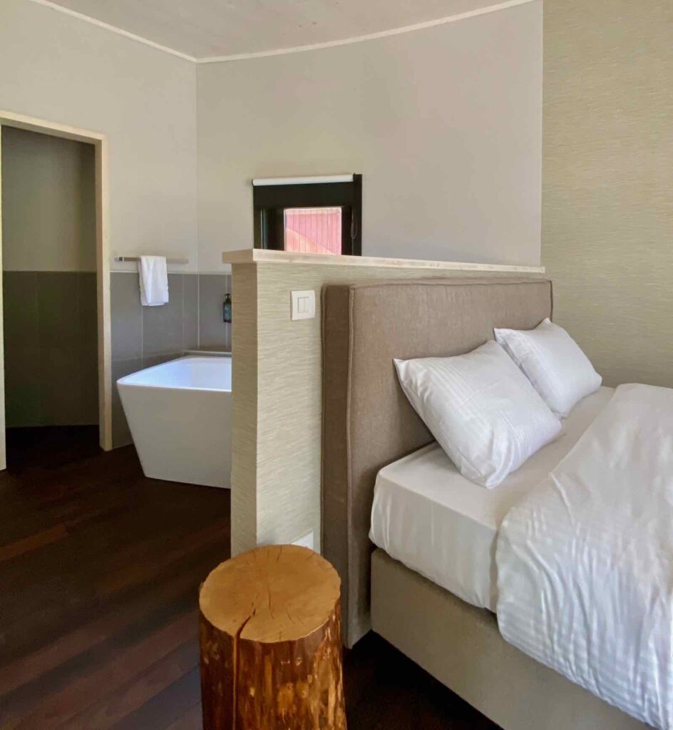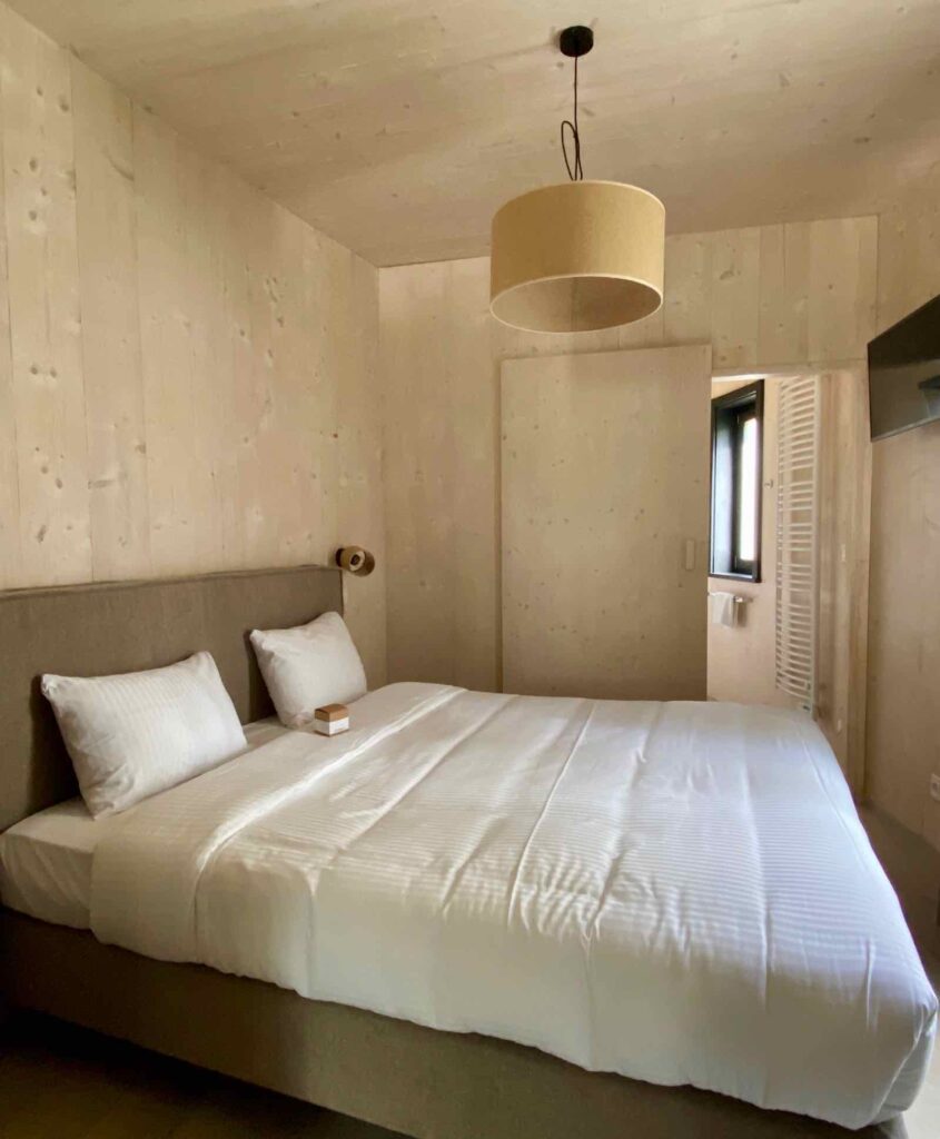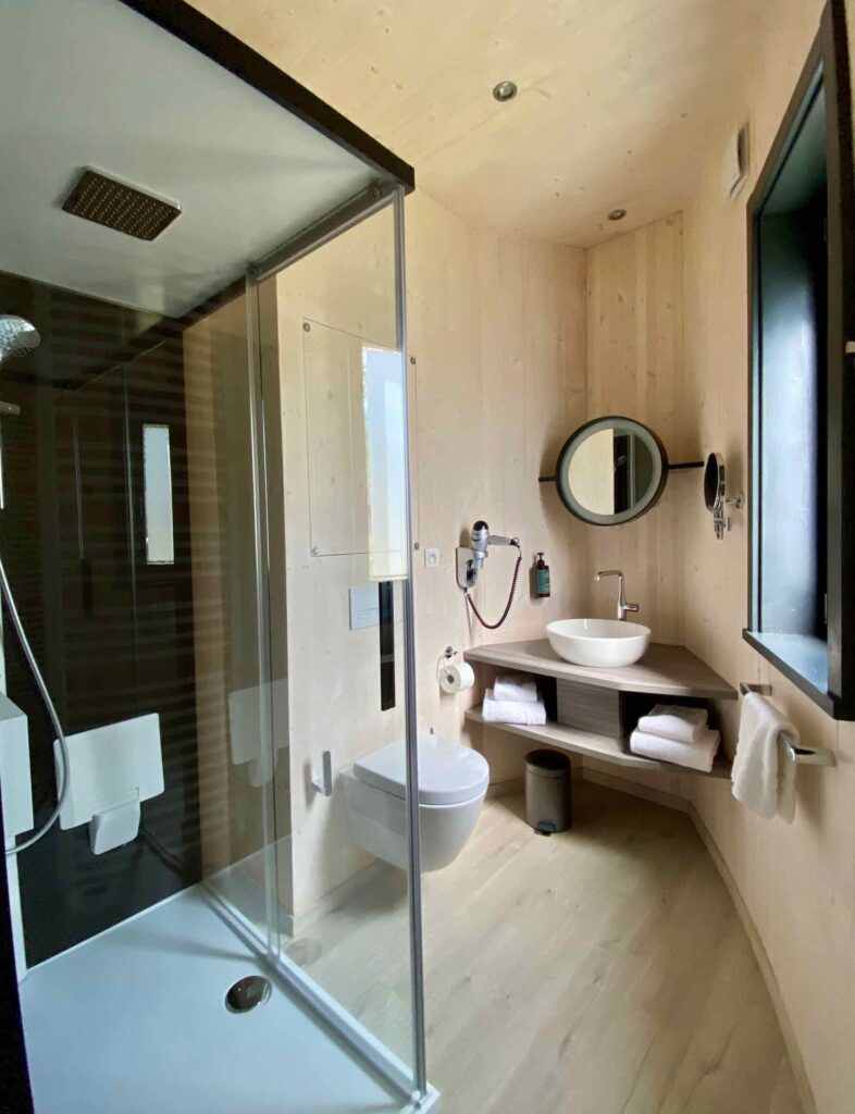 Venue seule, j’ai logé dans un Lodge, le plus petit hébergement proposé à Your Nature, prévu au maximum pour deux. C’est comme une Junior suite d’hôtel ou un studio de plain pied de 40 m2, habillé d’un joli bardage en bois.