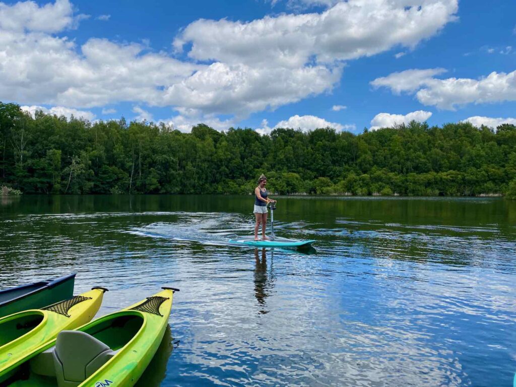 À la base nautique du Grand Large ou sur un autre lac du domaine, on peut tester ski nautique, kayak ou paddle (notamment électrique !).