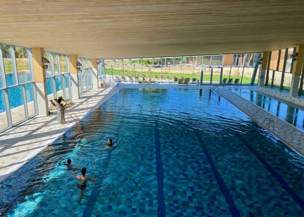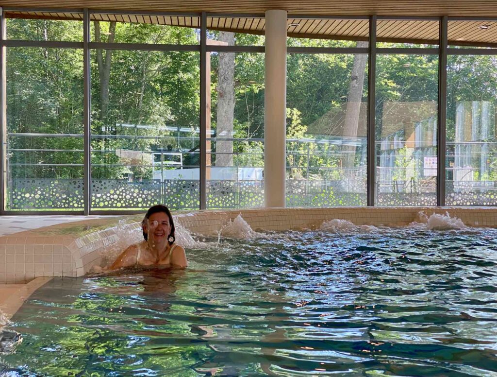 Côté piscine d’abord, avec trois bassins chauffés, dont un extérieur. Dont j’ai bien profité le premier matin…